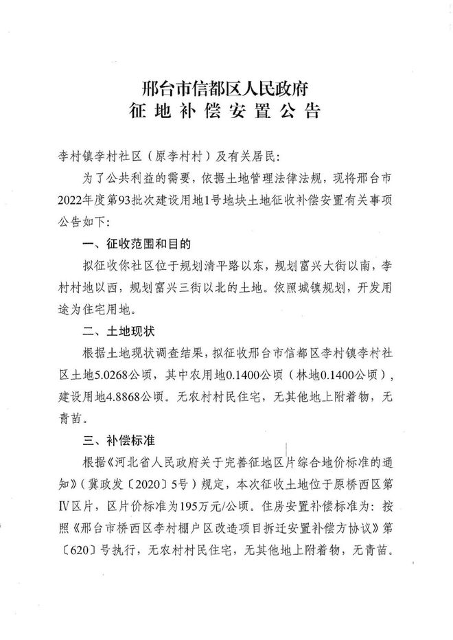 邢台最新拆迁公告,涉及五个村庄(社区)