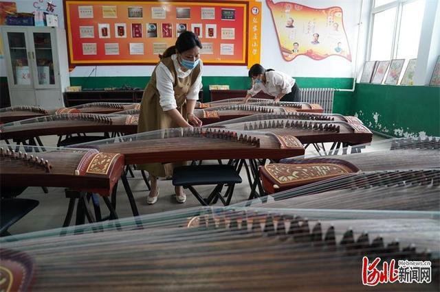 8月29日,在河北省邢台经济开发区张家庄小学,老师正在擦拭古筝。